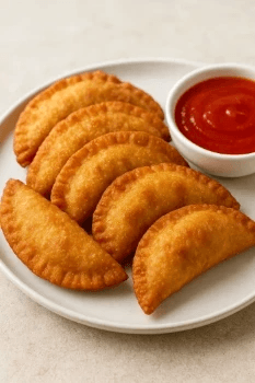 Triangles garnie au bœuf ou légumes ou poulet, accompagné d'une saladePASTELS